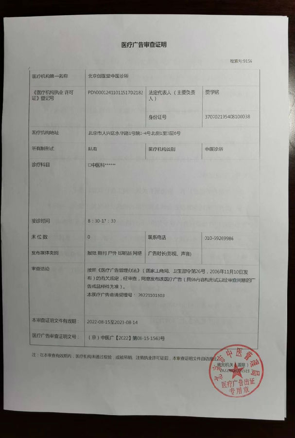 北京创医堂中医诊所经北京市中医药管理局批准“医疗广告审查证明”,可以进行以下范围的宣传:报纸、期刊、户外、印刷品、网络、广告时长(影视、声音)。 特此公示。